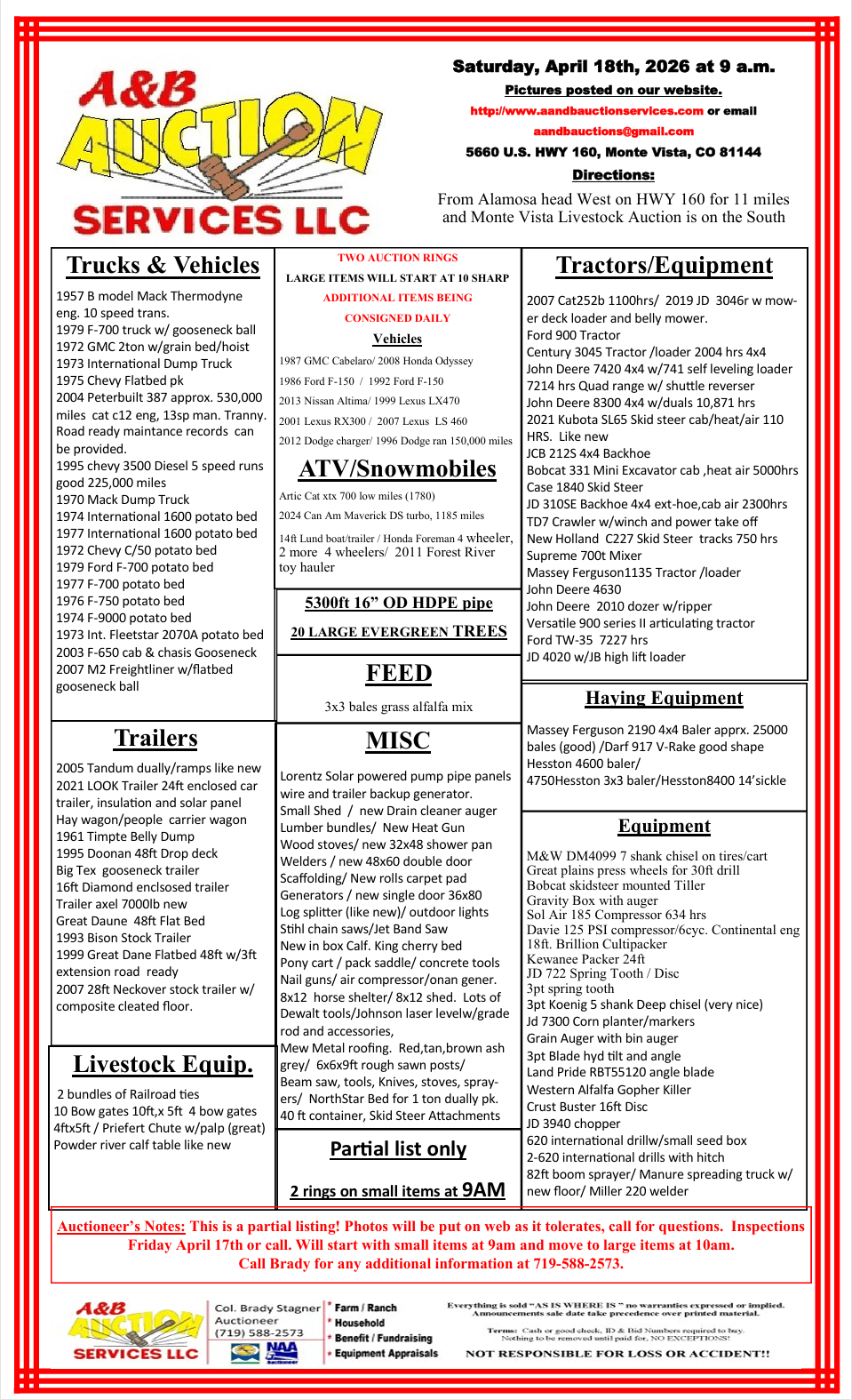 Proudly providing equipment and property auctions throughout the San Luis Valley and surrounding areas